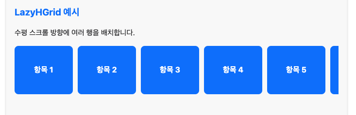 두 그리드 모두 비슷한 구조를 가지고 있지만, 스크롤 방향과 항목 배치 방식에 차이가 있습니다.