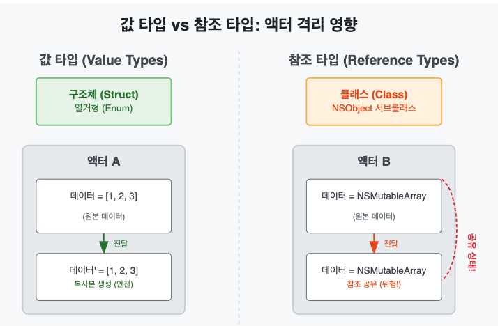 액터 격리와, 참조 타입과의 상호작용